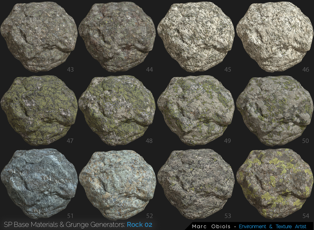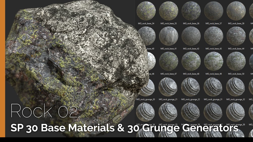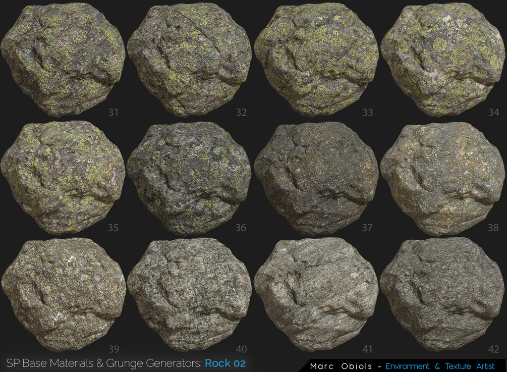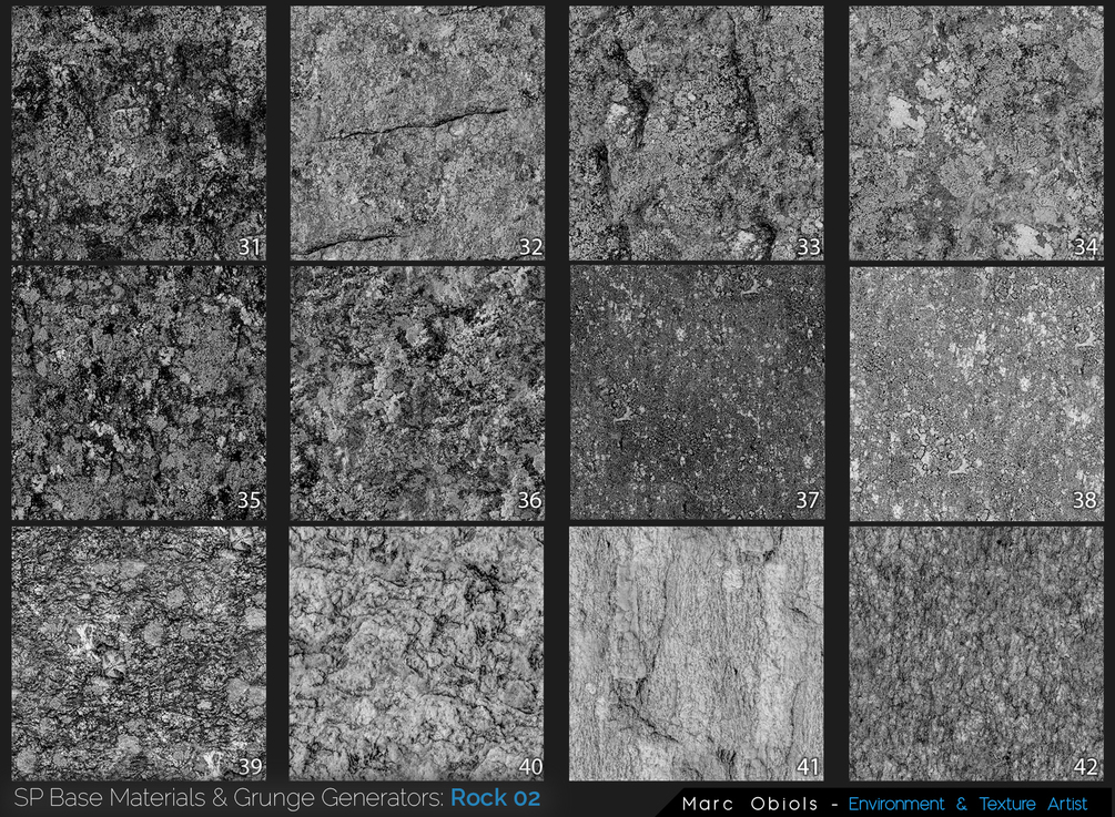 "SP Base Materials & Grunge Generators: Rock 02" it's a pack of Base Materials and Grunge Generators to use inside or above.