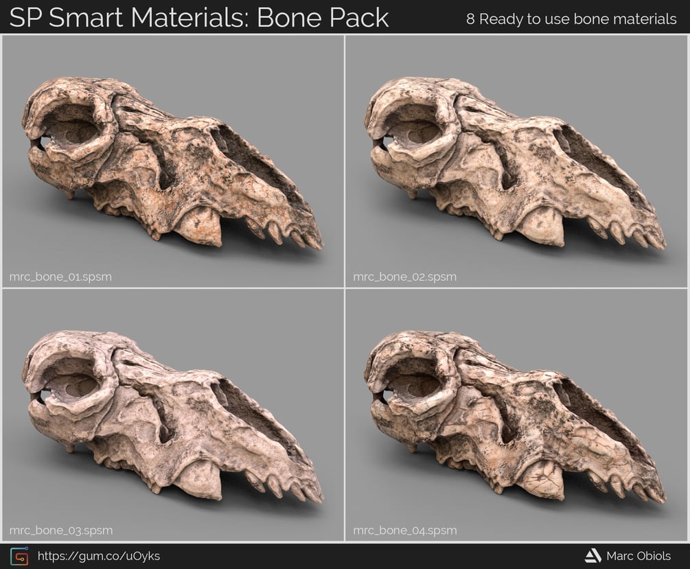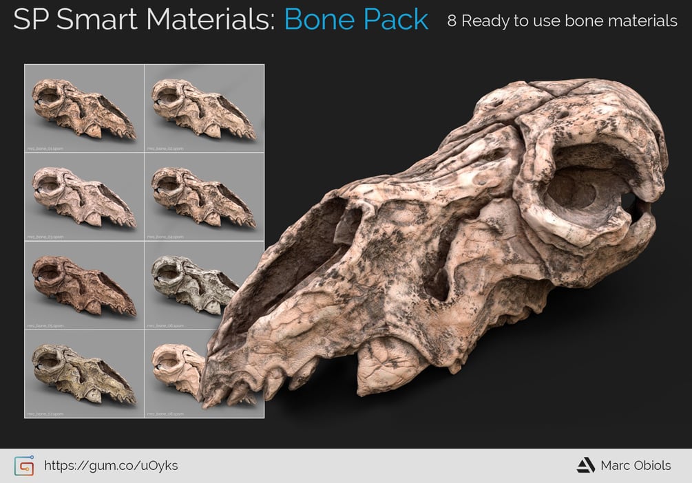 "SP Smart Materials: Bone Pack" it's a pack of Smart Materials to use inside Substance Painter 2.